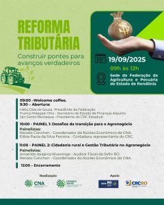 O Sistema FAPERON/Senar realiza em parceria com a Confederação da Agricultura e Pecuária do Brasil (CNA), no próximo dia 19 de setembro, em Porto Velho (RO), o terceiro evento regional para debater a reforma tributária e os impactos para os produtores rurais.