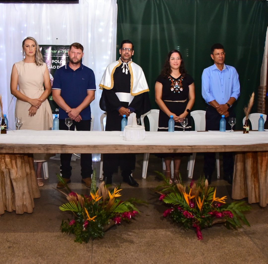 O evento reuniu autoridades e representantes institucionais, entre eles o coordenador regional da Rede e-Tec do Senar/RO, Wellington Moura Leão; o supervisor do Departamento Técnico, Kennio Freire Pessoa; a coordenadora de polo, Mônica Souza Santos Borghi; além de representantes da Prefeitura de Espigão do Oeste, do Legislativo municipal e do Sindicato dos Produtores Rurais de Espigão do Oeste, representado pelo mobilizador Davi Leonel Klitzke.