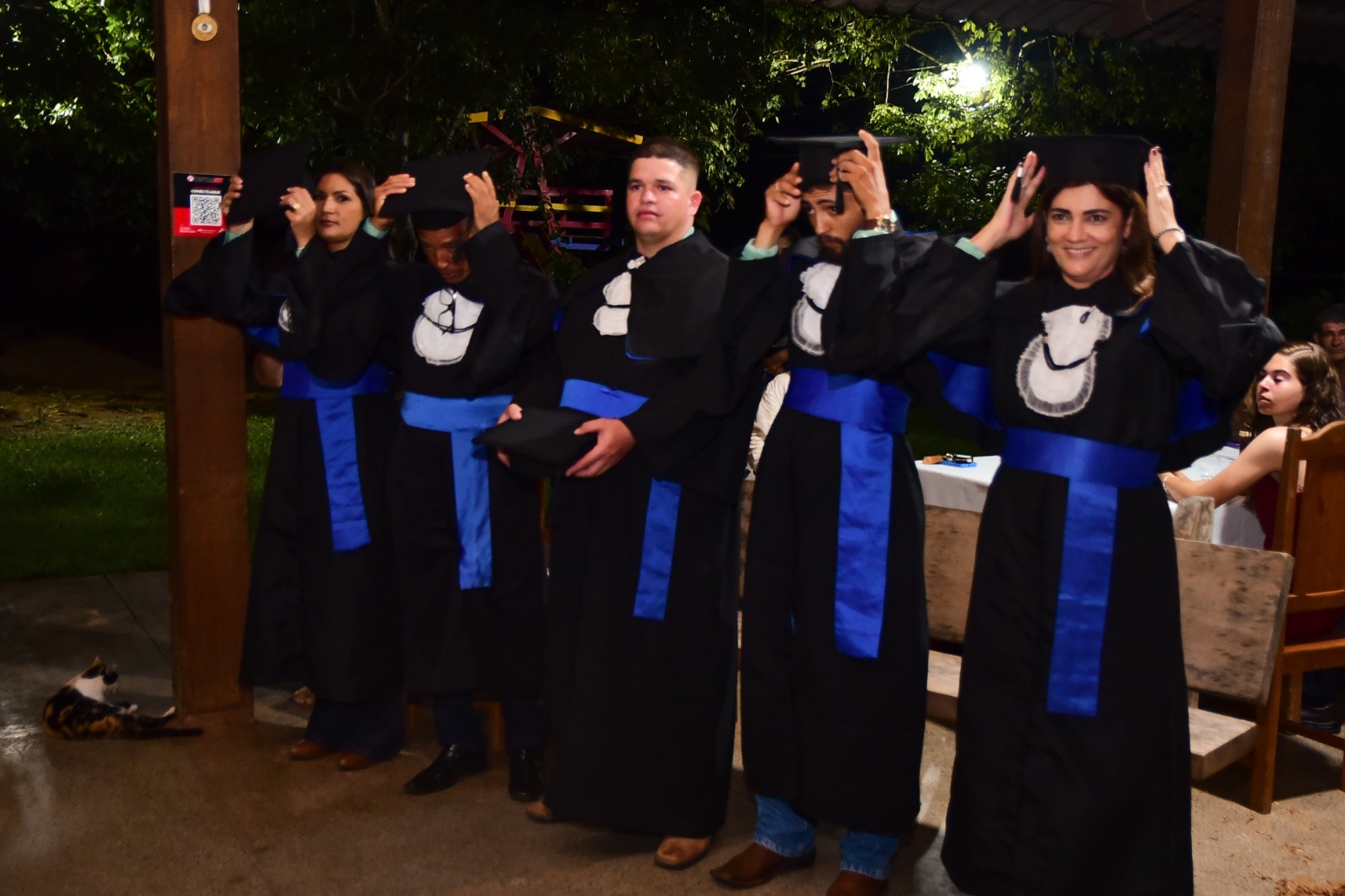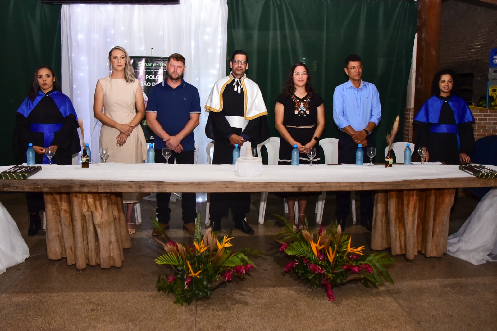 Durante a solenidade, foram prestadas homenagens à patronesse da turma, Rozinelha Kalke, e à paraninfa, Leilane Oliveira Santos, em reconhecimento à contribuição na formação dos alunos. A programação incluiu ainda o juramento dos formandos, a outorga de grau, a entrega simbólica dos certificados e o discurso do orador da turma, José Adilson da Costa.